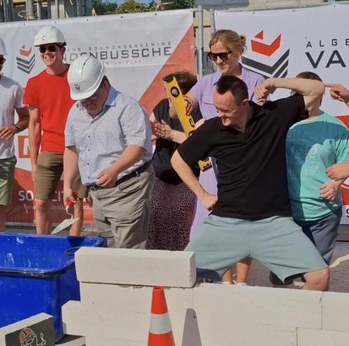 Hij ligt er, die eerste steen! Symbolisch dan toch, want het bouwproject in Stekene staat ondertussen al behoorlijk ver. Maar wat zijn we trots op deze mijlpaal. Blij voor onze organisatie, die steeds verder groeit. Maar ook blij voor Stekene, waar al jarenlang gedroomd werd van een ondersteunende woonplek voor Stekenaren met een beperking.
